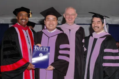 当院の院長は、大阪大学歯学部卒業後、日本の歯科診療レベルより何年も進んでいるというアメリカの歯科診療を学びたいという思いから渡米。2004年から2008年まで、アメリカ・ボストンのタフツ大学歯学部補綴学科へ留学しました。
