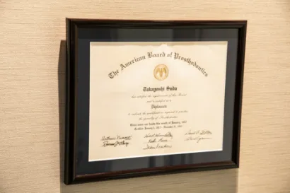 さまざまな学会への参加・発表を経て、日本では誰も手にしたことのない世界最高峰の資格である、米国ボード認定補綴専門医の資格を取得しております。補綴専門医とは、審美、インプラント、かみ合わせ治療のみならず、それらの内容をより複雑なケースでどのように対応していくか総合的に判断することができると認定された歯科医です。